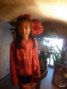 Oh! There was also one of the fanciest, and cleaniest (likely because you had to pay to use it), bathrooms I have ever seen. The girls and I were ushered into the wheelchair bathroom because of the stroller. There was a large alcove off to the side which served no purpose but to house a window, a small candalarbre and a floral arrangement. As you can see from the photos, it was quite a large decorative space.