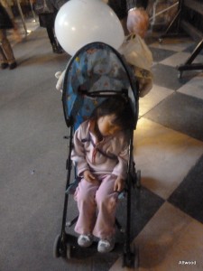This is how exhausted Elspeth was on our first day. We ended up buckling her in so that she wouldn’t fall out head first.