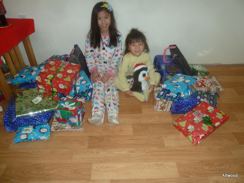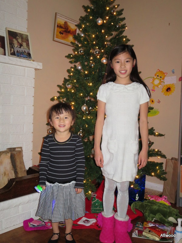 The girls gave us a real present today – they slept in!! And on Christmas Day!! It was wonderful. Once we were up and their grandparents were up it was off to stockings.