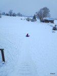 Those are two of my favourites. At Glenn’s cousin’s house there is a wonderfully large lawn off of the deck. The kids got quite the speed running down the stairs and out across the snow. At one point there was even a train waiting to sled on down.