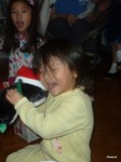 The it was dessert with extremely candy caney white chocolate bark…oh and Martha Stewart style sugar cookies (because the other Heather is an awesome baker) and of course, more presents. The girls each got a bean bag chair. I will let the photos show their reactions.