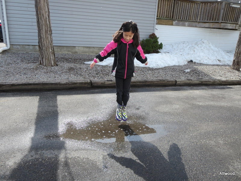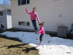 One of the cousins shared their jumping rock and the girls embraced this concept. I was quite surprised to see Elspeth get in on the action given that she usually needs to be holding on to a hand in order to jump off of something into an unknown ( in this case a pile of snowy grass). Seeing her sister and cousin jumping encouraged her to give it a try and then it was hard to convince her to try anything else outside. By the way, I love how my new camera takes action shots!